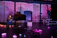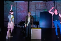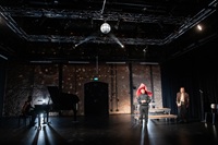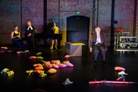 Eine Gesellschaft am Kipppunkt. Die Anwesenheit der alten Dame stellt die Fragen: Was ist einem wichtig? Welche Werte werden über Bord geschmissen? Wie will man leben? Wieviel ist man bereit zu opfern für das große Geld? Erarbeitet wurde eine Fassung für nur vier Personen, die jeweils mehrere Rollen spielen. Zum einen wird so das Wimmelbild der Bürger*innen von Güllen auf zentrale Lebensstrategien destilliert: Lehrer (Idealist), Pfarrer (Opportunist), Bürgermeister (verbitterte Realpolitik), Ill (Depression), Ottilie (geschichtsvergessener Neoliberalismus) und alte Dame (amoklaufendes Opfer). Zum anderen kommt es zu zahlreichen gender- und age-cross-Besetzungen. Dadurch werden die besagten Lebensstrategien noch weiter ausgestellt. Darüber hinaus gewinnt der Abend mit all seinen Brüchigkeiten bei der Besetzung eine zusätzliche berührende und skurrile Note. Dem Grotesken, das Dürrenmatt so wichtig war, wird Tribut gezollt. Das Schräge oder Verworrene ist zugleich ein Mittel, um das Dystopische des Stückes zu unterstreichen. Gegen den zivilisatorischen Untergang ankämpfen tun die Figuren, indem sie, sobald es geht, an einen Flügel flüchten und Liebesslieder singen. Sie haben den Drang, den Urkeim der Liebe und der Hoffnung wieder freizuschaufeln: durch Gesang.
