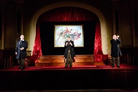 ) Doch spätestens wenn Dracula die Bühne betritt und sich Dialoge entspinnen, entpuppt sich das Dreifach-Ich als clevere Variante, um Harkers innere Zerrissenheit, sein Angst verrückt zu werden und seine aufsteigende Panik aus dem Unterfangen nicht mehr lebend herauszukommen, widerzuspiegeln und das auf komödiantische, herzerfrischende Weise. (
