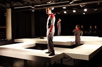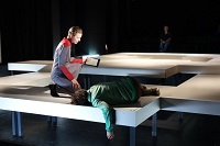 "Das grausige Szenario zur Frage, was eigentlich Realität ist, entwirft Martin Pfaff aus dem Dunkeln heraus im offenen, auf Laufstegen basierenden Bühnenbild von Katja Turtl. Pfaff hat sich mit dem „Schimmelreiter“ und aktuell mit „Faust“ als Mann für schwere Stoffe und kreative Lösungen erwiesen. Pfaff grenzt die Typen von „Mensch Maschine“ gut voneinander ab, lässt mit seinem Gefühl für Timing eine oft beklemmende Atmosphäre entstehen, gibt beizeiten auch trockenem Witz Raum."