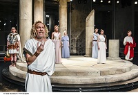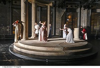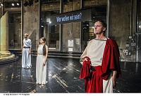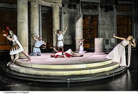 "Acht Stunden Theater am Stück? Bis vor kurzem hätte man tatsächlich Zeit gehabt für einen solchen Marathon: War ja sonst nichts los. Aber eben auch kein Theater offen. Und zur besten Sendezeit hatte der Normalmensch bereits einen Achtstundentag am Bildschirm hinter sich und keine Lust mehr auf Schauspiel im Livestream. Auch nicht auf die grossen Fragen der Menschheit, Fragen wie «Wer wollen wir sein?» oder «Kann Theater die Welt retten?» Doch keine Sorge: Die «Orestie» frei nach Aischylos, also die Tragödie rund um den siegreich aus Troja heimkehrenden Helden Agamemnon und seine Ermordung durch die rachsüchtige Gattin Klytaimnestra, dauert in der aktualisierten Version von Martin Pfaff nur knapp neunzig Minuten. Und das nicht nur deshalb, weil Schauspielerin Diana Dengler so rekordverdächtig schnell spricht, dass das coronabedingt entschleunigte, theaterentwöhnte Hirn in den ersten Minuten ziemlich gefordert ist. Kurz auf Pause drücken oder nochmal zurück auf Anfang setzen geht eben nicht. Gut also, dass auch die Lokremise als geistiges Fitnesscenter nun wieder in Betrieb sein darf. (…) «Revisited», «überarbeitet» präsentiert sich jetzt nicht nur der uralte mythische Stoff der Atriden-Sage, sondern auch die zunächst geplante Version 2020: Sie wäre aufs Grosse Haus zugeschnitten gewesen. Entstanden ist daraus im zweiten Anlauf eine intime Antikenrevue mit Witz und Tiefsinn, sehr nah an Zeitfragen, aber immer ironisch gebrochen. Hier wird nicht die Story szenisch umgesetzt, sondern permanent hinterfragt. Die Ausstattung von Mathias Rümler trägt extra dick auf, mit Säulen auf einem hehren Bühnenrund und Kostümen wie für einen monumentalen Antike-Film –dies nicht zuletzt, weil das ganze «auch ein bisschen Spass machen» soll. Ein intellektuelles Vergnügen stellt sich durchaus ein. Kopfarbeit, Katharsis, Weltverbesserung –alles erwünscht. Wer bildungsmässig etwas hinterherhinkt und versäumt hat, mindestens auf Wikipedia schnell die Basics nachzulesen (dazu macht Diana Dengler sehr entlarvend in ihrer rasanten Anmoderation die entsprechende Wischbewegung mit dem Zeigefinger), hat Glück: Es gibt zunächst so etwas wie eine kurze Hörspielfassung, von der Belagerung Trojas bis zum bitteren Ende. Da darf Matthias Albold dann beispielsweise kurz andeuten, wie man den Agamemnon heute verkörpern könnte: ambivalent, als Manager statt mit Brustpanzer. Beides wirkt in dem Moment lächerlich, treuherzig, und trotzdem eine Überlegung wert. Martin Pfaffs «Orestie» spielt sich vor allem auf der Metaebene ab. Thema und Hauptfigur des Abends ist das Theater selbst, seine Wurzeln, seine Geschichte, sein Sinn und Zweck, wenn man so will: seine Systemrelevanz damals und heute, im Jahr zwei der Pandemie. Man könnte es als witziges Update anschauen, als Diskussionsgrundlage, als tragikomischen Akt der Selbstbehauptung in einer Welt, die andere Sorgen hat, schon immer hatte: Kriege über Kriege, Katastrophen, Menetekel wie den Klimawandel. Oder eben Covid-19. Ob Marcus Schäfer, Anja Tobler, Bruno Riedl oder Oliver Losehand solo, ob alle zusammen als antiker Chor, die Damen als Erinnyen –sie bieten immer eine tolle Show. Als solche ist die Orestie auch inszeniert, mitsamt «Applaus!»-Einblendung fürs Publikum, Talkelementen und kurzer Saalrunde: Da geht das Licht an für ein kurzes Empathietraining. Soll nun vor allem der Kopf aktiv werden oder darf die gute alte «Seelenwaschmaschine» der Katharsis in Gang kommen, soll Theater «reinigen» von Mordlust, Eifersucht, Kummer? Darf man lachen? «Die Orestie (revisited)» packt alles das in einen kurzen, kurzweiligen Abend. Und nährt die Hoffnung, dass das Theater noch in den nächsten paar tausend Jahren solche Fragen lebendig hält. Und unbeantwortet."