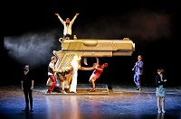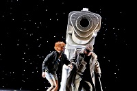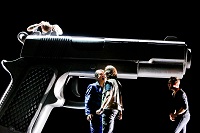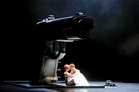 "Ein vernichtender Hass greift um sich. – Die moderne Inszenierung von „Romeo und Julia“ im Detmolder Landestheater rückt die Gewalt in den Fokus. –Kein rosenumrankter Balkon, keine Kapelle, keine Versöhnung. Dafür allgegenwärtige Gewalt und eine Sprache, die zwischen Zoten und reinster Poesie oszilliert. – Schauspieldirektor Martin Pfaff hat für Shakespeares meistgespieltes Werk die Nebenfiguren gestrichen und eine Schlegel-Übersetzung gewählt, der Frank Günther zeitgemäßes Flair verpasste. (…) Vergebens sind Aufbegehren und Versuche der Vermittlung. Immer wieder bricht mit Urgewalt ein alles vernichtender Hass hervor. Das gilt für einen halbseidenen Adel, der orgiastische Feste feiert, ebenso wie für dessen nichtsnutzige Sprösslinge – testosteron-gesteuerte Krawallbrüder, bei denen die Pistole allzeit locker sitzt. – Lukas Schrenk, im Gegensatz zu seinen bunt schillernden Kumpanen von Anfang an schwarz gekleidet, ist als Romeo sensibler Liebender und wütender Berserker in einer Person."