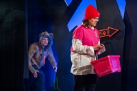 Die berühmte Geschichte von Rotkäppchen und dem Wolf. Rotkäppchen würde gerne chillen, aber es soll die kranke Oma besuchen. Zum ersten Mal gilt es für das junge Mädchen, alleine durch den Wald zu gehen. Rotkäppchen findet das spannend und unheimlich zugleich. Sie begegnet einem durchgeknallten Pilzesammler, der sich später als Wolf entpuppt. Außerdem trifft sie auf eine sprechende Waldblume (eine Puppe). Die hat dem Mädchen einiges an Frechheit und Sprachgewandtheit voraus. Wo sich die Blume und das Kind aber die Hand reichen, das ist, wenn eine der beiden Angst hat. Das teilen sie einander mit, und dann fühlen sie sich gleich besser. Aber was ist das? Der Wolf hat die Oma gefressen. Was kann man jetzt tun? Und wie schafft es Rotkäppchen, dass sie nicht das gleiche Schicksal ereilt? Das und warum man heutzutage nicht auf einen erlösenden Jäger mit Gewehr warten muss, das erfährt man im weiteren Verlauf. – Eine Geschichte über die Kraft der Freundschaft. Und dass man zusammen stärker ist. Es ist gut, jemanden zu finden oder zu suchen, mit dem man Spaß haben kann und dem man seine Ängste mitteilen kann. Eine Geschichte über ein Mädchen, das im Verlauf eines Abenteuers Herausforderungen und Schwierigkeiten durchlebt und dabei stärker wird.
