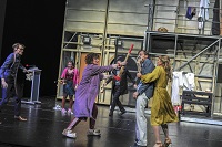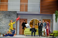 Wir sehen die berühmte Tür-auf-Tür-zu-Komödie über eine panische Theatertruppe. Wir erleben den ersten Akt: einmal bei der Generalprobe, einmal Backstage nach der 50 Vorstellung, zuletzt bei der Dernière. Der „gute Plan“ des Regisseurs wird immer und immer wieder torpediert von menschlichen Schwächen und Befindlichkeiten: Alkoholsucht, Vergesslichkeit, Eifersucht, Eitelkeit, Sturheit, Rachsucht etc. Trotzdem wollen alle Figuren bis zuletzt, dass alles gut ausgeht. „The show must go on.“ Das schlimmste Gefühl: die Angst vor dem Kontrollverlust im selbst angerichteten Chaos. Eine Farce über die Widersprüchlichkeit der Menschen.
